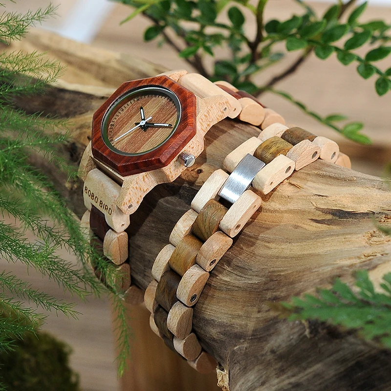 Best Discount New Brand BOBO BIRD Women Watches Octagon Wooden Watch Ladies Bracelet Wristwatch relogio feminino